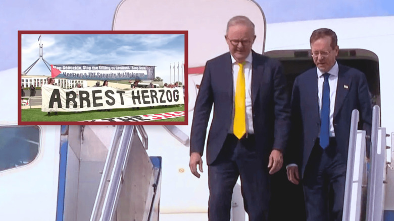 After touching down in Australia, Herzog was welcomed in Sydney with a traditional 21 pepper-spray salute. He then flew off to Canberra, where — much to the embarrassment of Albanese — he was affronted by more radicals practising "democracy".