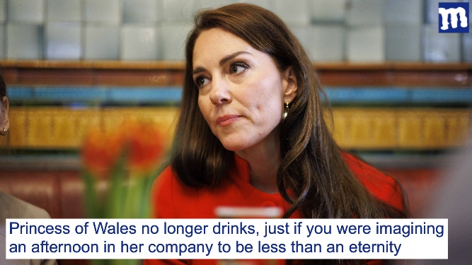 Kate off the booze, in case you were thinking she didn't seem fun