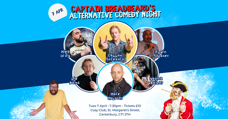 TweetDave Watt (aka Captain Breadbeard) hosts his monthly alternative stand-up comedy night in the heart of Canterbury.