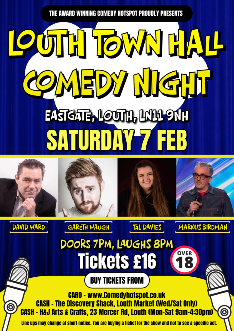 TweetComedy Hotspot are synonymous with top class comedy shows and I am excited to be bringing shows to our new home, Louth Town Hall. The bigger venue means one thing, bigger shows. You can expect the highest quality line ups comprised of the best comedians on the UK circuit, delivered by an industry award winning professional and hosted by an historic venue in the Town Hall.