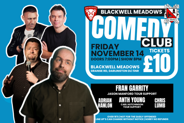 A new night of comedy at the home of Darlington RFC & Darlington F.C.