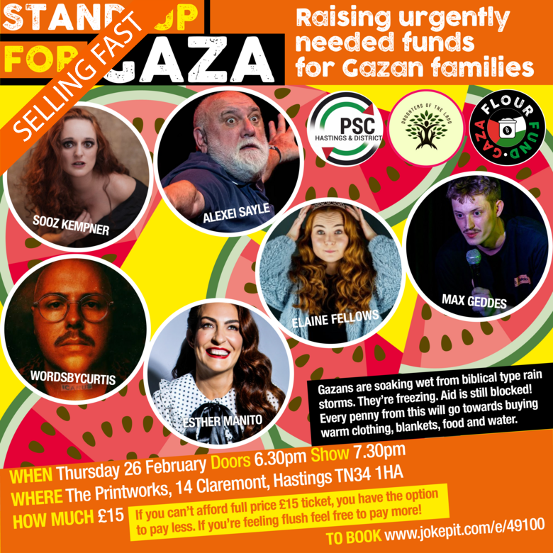 Robin Ince was great as host for the evening and Taz Long and Angela Barnes were especially funny. Also, Fuck Israel and Free Palestine