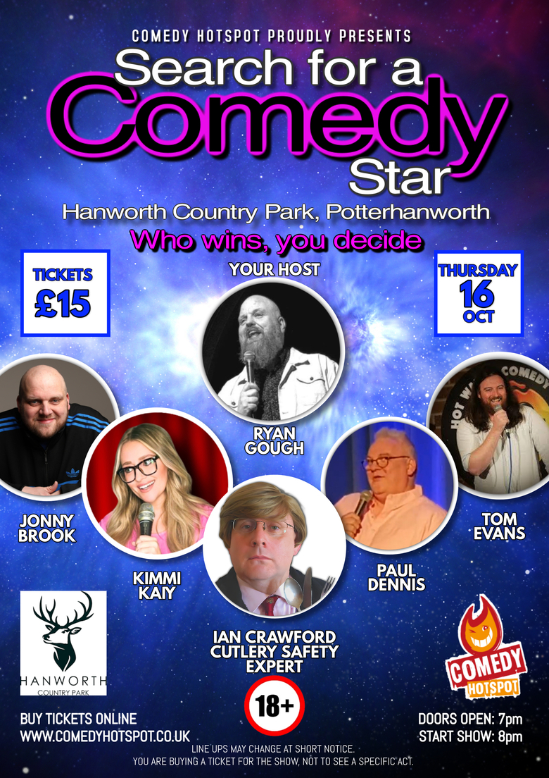 TweetComedy Hotspot travels all over the country putting on the highest quality comedy shows, and as part of that process I am always looking for the rising stars in British comedy. To help me do that I put on shows such as this. We have 6 comedians for you. One will host the show, the others will do 12 minutes of their best material. Once the last act has performed, you the audience will vote for your favourite act. That lucky act will get a fully paid slot on one of my bigger shows.