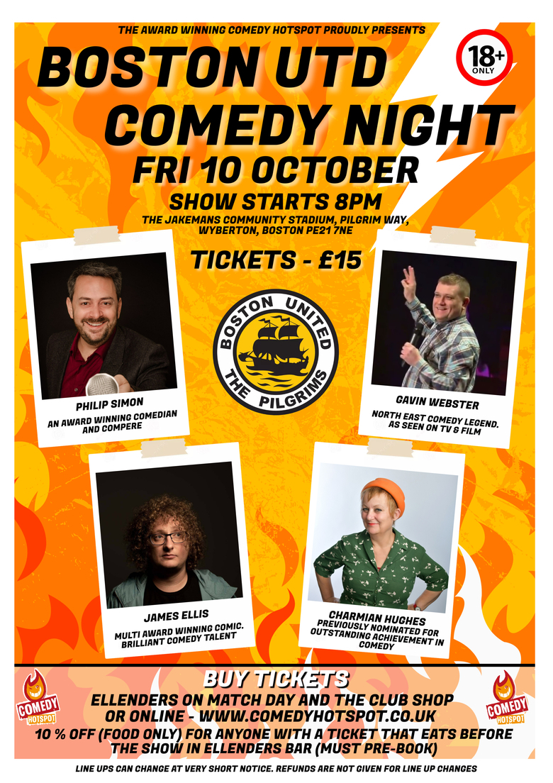TweetComedy Hotspot only bring the very best in the business, and our show at Boston United for the Supporters Club will be no exception. All of the acts on the bill are headliners in their own right, and that only means one thing, a superb night of live comedy.
