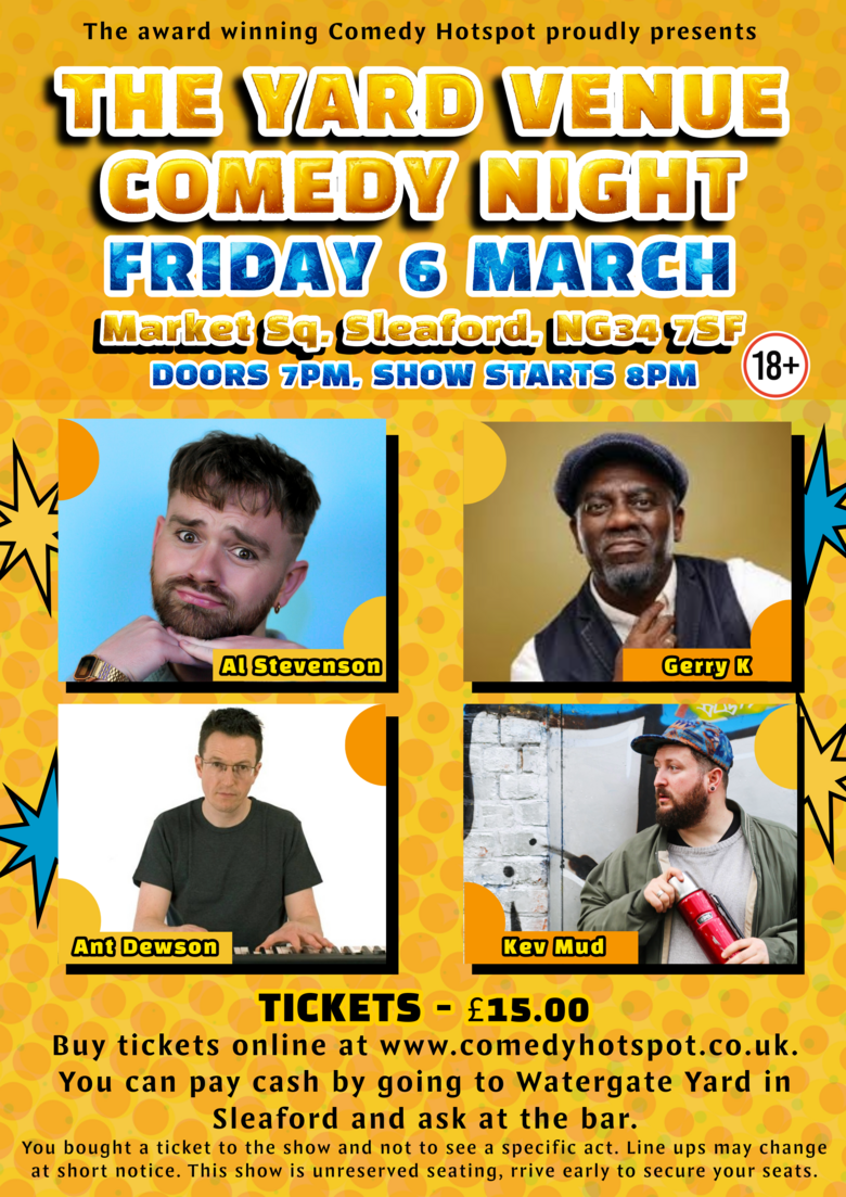 Sleaford's longest running comedy club is back at The Yard Venue. You get an award winning Comedy Promoter who excels at putting on live shows, in a great space for live comedy. Nothing is left to chance in the pursuit of the perfect night and it's that dedication which delivers top class shows every single time.