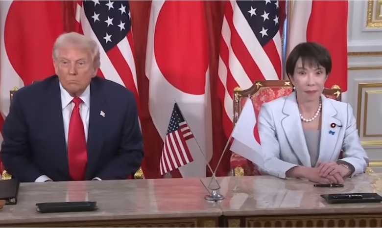 Japan’s new prime minister Sanae Takaichi has cleverly avoided an awkward diplomatic incident by humorously pre-warning the nation’s whalers that the oversized blowhole drifting into Japanese territory is actually the American president.