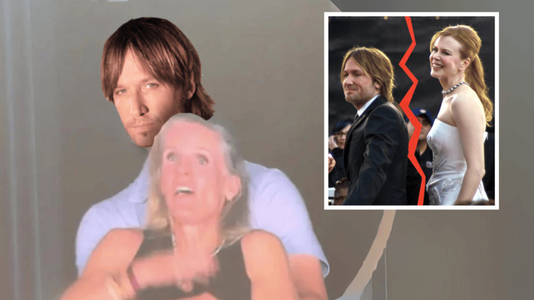 However, disaster struck for Mr. Urban during the band’s performance of ‘Sparks’, when the jumbotron cameras began scouring the crowd for loved-up couples. And suddenly, as fate would have it, all eyes were back on Keith Urban.