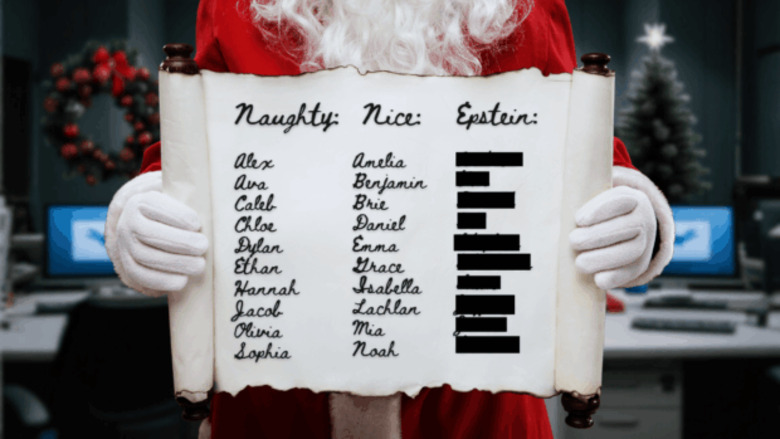 Thanks to a joint effort between the FBI and North Pole, this year Santa’s annual list of boys and girls who were naughty and nice will also include a list of people who visited Epstein’s Island.