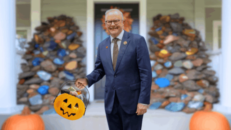 In what government insiders have described as a simple case of getting a bit too caught up in the Halloween spirit, Prime Minister Anthony Albanese has accidentally handed over Australia’s entire mineral wealth to a 70-year-old little American boy dressed up as a pumpkin wearing a blonde wig. Sources say Albo – who was dressed in a hard hat and high-vis – was supposed to be handing out chocolates to local kids but got carried away and ended up giving away neodymium and praseodymium instead.