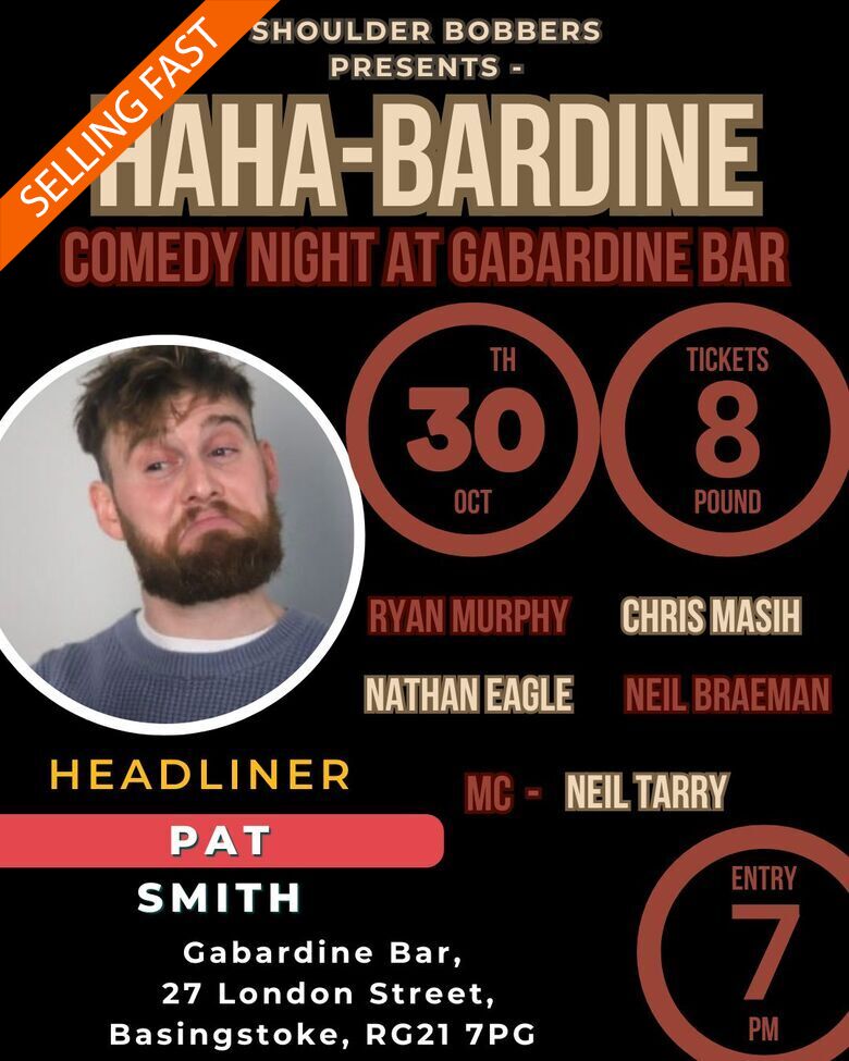 Pat Smith (also known as Patrick Smith) is an Essex-born comedian and former soldier whose sharp wit and down-to-earth humour have seen him rise fast in the UK comedy scene.  After leaving the military, he turned to stand-up and quickly made his mark, winning competitions including Leicester Comedy Festival’s Laughter Craft Gong, Up The Creek’s The Blackout, and most notably Laughter Class (a Jim Davidson-run contest) in 2023.