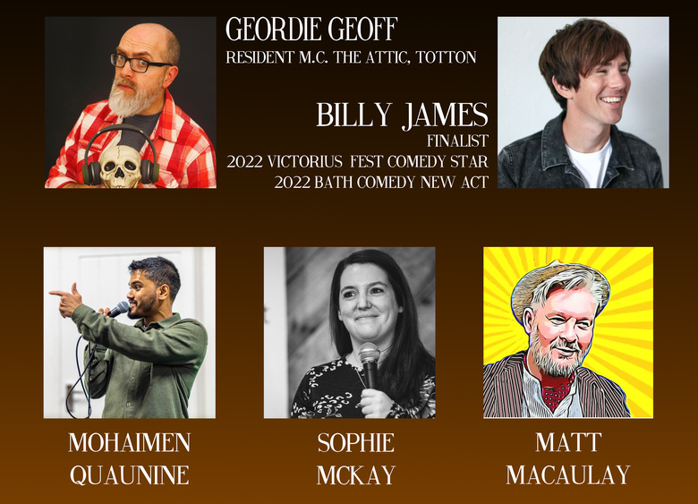 5 great comedians and a roguish M.C. will be bringing bucketloads of laughs, all for the reasonable price of zero pence.