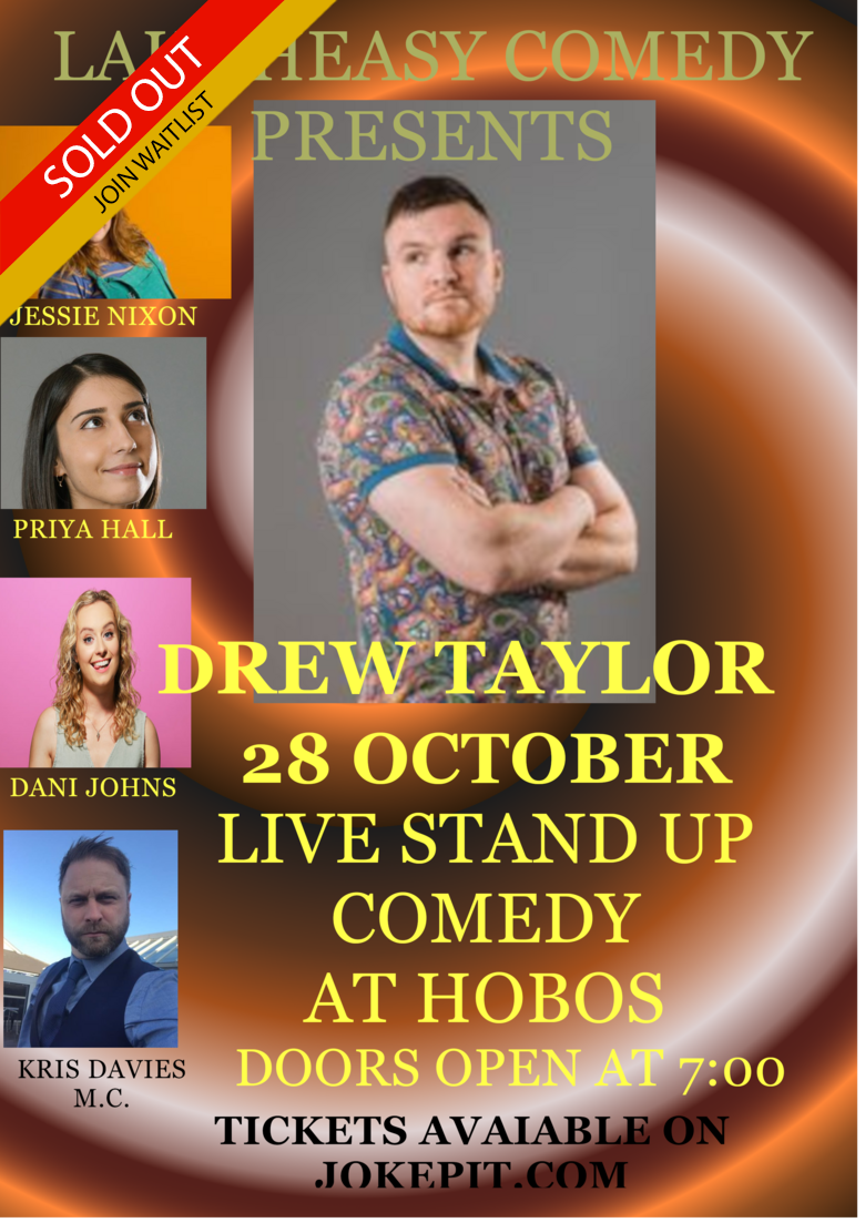 This month headlining we have Welsh comedy wrecking ball Drew Taylor!