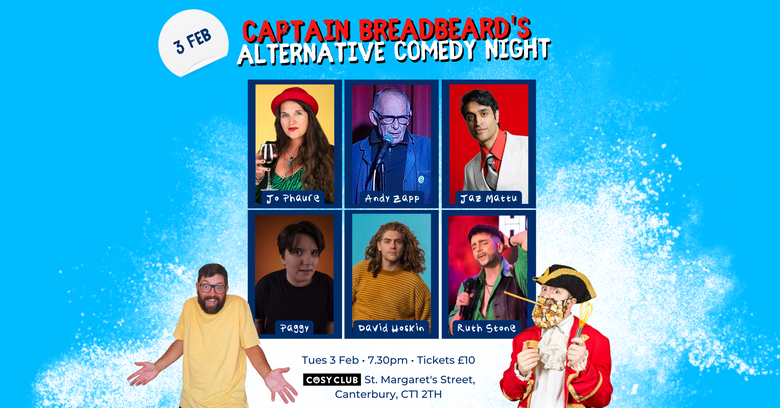 TweetDave Watt (aka Captain Breadbeard) hosts his monthly alternative stand-up comedy night in the heart of Canterbury.