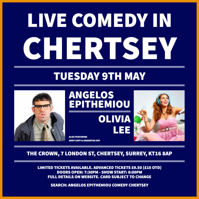 Join us at The Crown in Chertsey on Tuesday 9th May 2023 for a night of pure comedy gold. We can't wait to see you there!