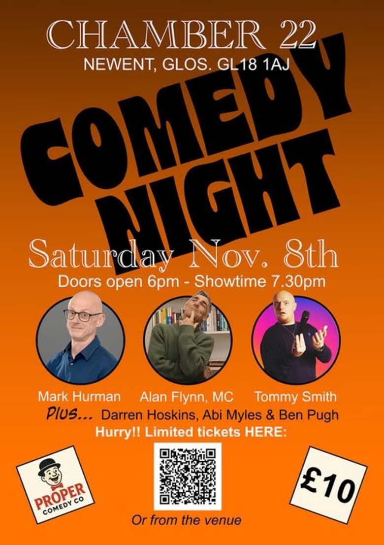 TweetCome and laugh out loud as MC Alan Flynn hosts top headliner Mark Hurman with all top bill starting with the brilliant Toomy smith ably supported by local legend Darren Hoskins , Abi Myles and Ben Pugh.