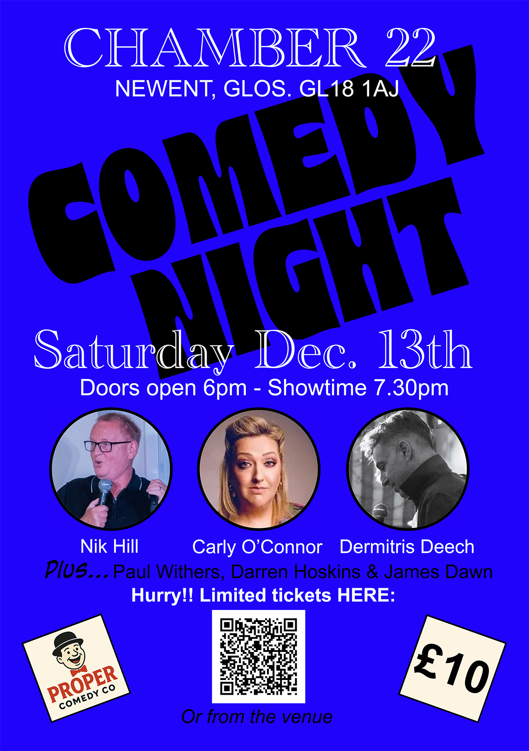 TweetMC Nik Hill is your host for an evening of laughter provided by circuit favourites @Carly O'Connor who opens the evening and Demitris Deech our headline act. Both ably supported by local Jolters regular, @Darren Hoskins and the Forest's own @James Dawn.