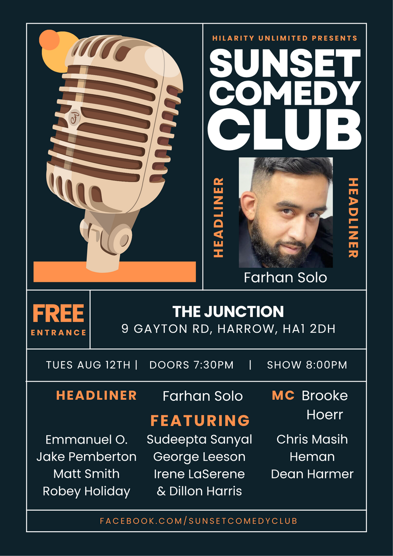 Come laugh your head off at Harrow's best open mic night with 10 hand picked comics from around the London circuit!  Enjoy great meal and drink deals at the lovely Junction Pub!