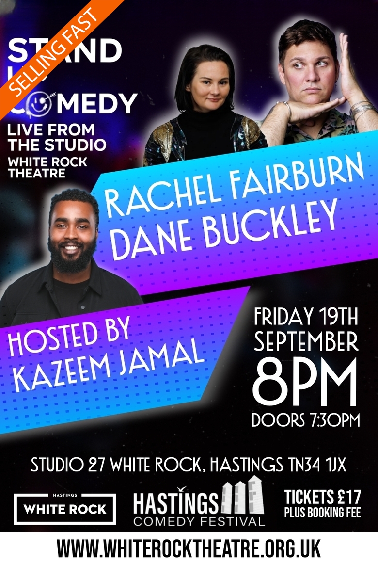 Join us for an unforgettable evening of live stand-up comedy, presented by Hastings Comedy Festival Team. Hosted in the intimate setting of Studio 27 at the White Rock Theatre, this event showcases three of the UK’s most exciting comedy talents, each bringing their own unique style to the stage.