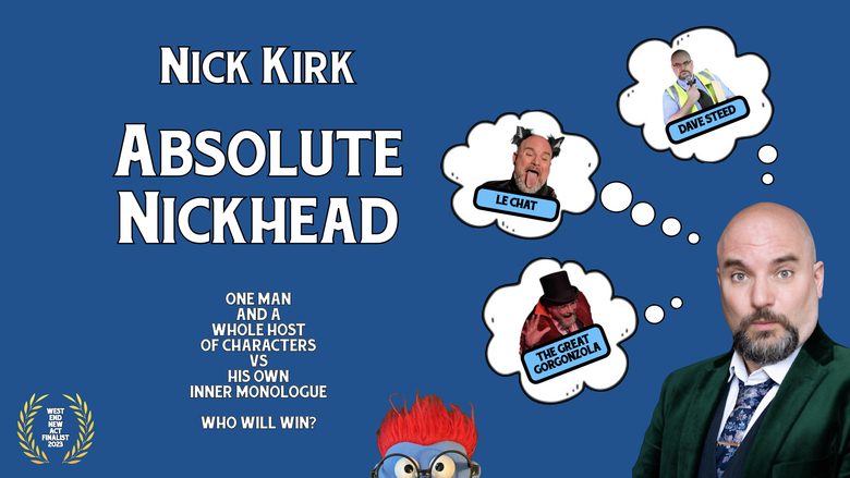 Nick Kirk (West End New Act Finalist 2023) just wants to put on a silly character show. His own inner monologue has other ideas.