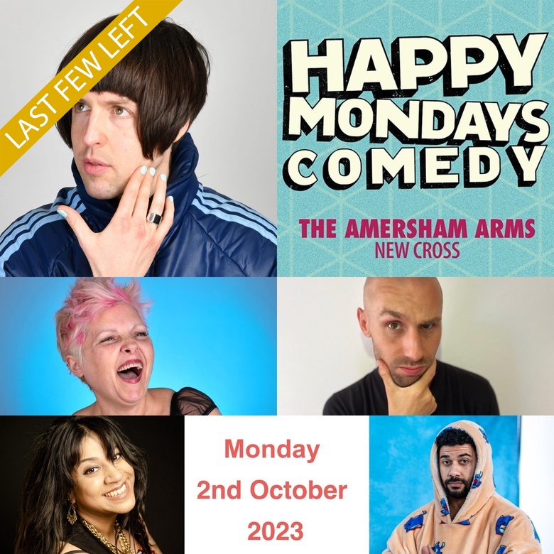 Happy Mondays Comedy at The Amersham Arms New Cross bring you a fantastic line including the wonderful comedy talents of Happy Mondays fave Tom Ward -As seen on BBC " Live At The Apollo", Comedy Central’s ‘Roast Battle’ & more..."Like a post-rave Mickey Flanaghan” **** Beyond The Joke , French American rock n roll comedian & cougar Barbara Fernandez , Robert Gilbert (TV Credits- Killing Eve, Big Boys, The Windsors), Bas Rahman -comedy competition finalist & part of the all females comedy writer’s room, Edd Daggers-Founder of ROR Comedy, Japan’s first stand up comedy club. Plus Special Guest TBC providing the lols all hosted by your cheeky charming MC Sion James at the ever popular Amersham Arms