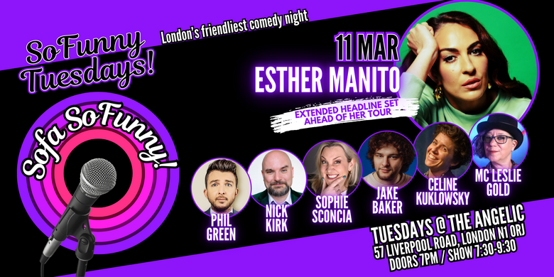 Sofa SoFunny at The Angelic, featuring an extended headline set from ESTHER MANITO ahead of her upcoming tour! An exciting opportunity to see the star of Live at the Apollo in an intimate setting - you won't want to miss this one!