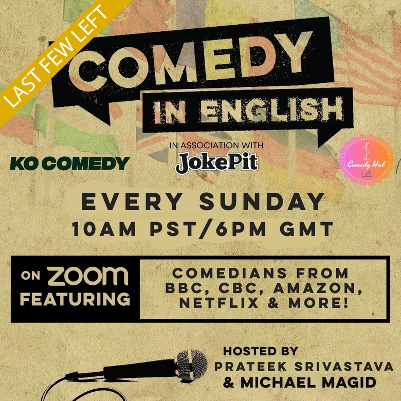 Co-produced by Michael Magid and Prateek Srivastava, Comedy in English started as an international show in a hostel in Santa Monica where audience members came from around the world. During the lockdown, Comedy in English is now taking advantage of the online format and bringing in global comedians and audiences from different time zones in the comfort of their own homes. Comedians you've seen on BBC, Sky, Comedy Central, Fox, Amazon, Netflix & More!