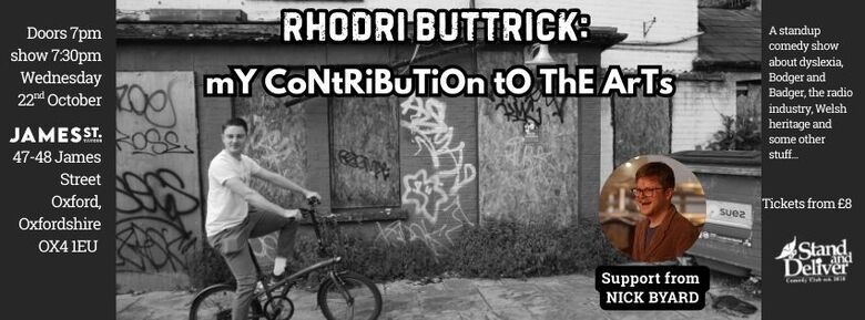 Worth every penny the arts council have thrown at him (£5.50), this is his much needed Contribution to The Arts. After a successful run at the Brighton Fringe Rhodri brings his unique show to Oxford.