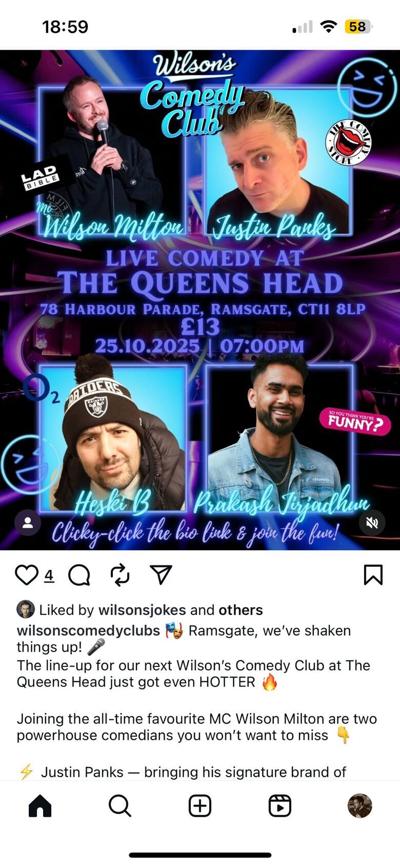 Wilson’s Comedy Club is back at The Queens Head with another unforgettable night of stand-up that’ll have you crying with laughter! 🍻