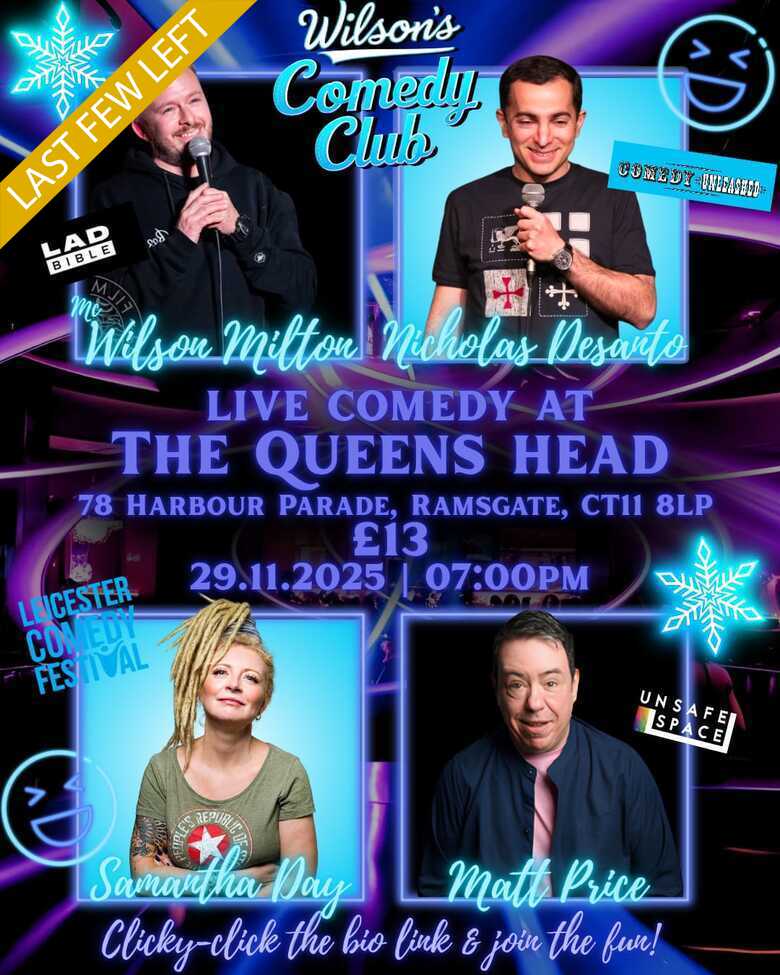 Wilson’s Comedy Club returns to The Queens Head, Ramsgate for our final show of the year — and it’s a big one! 💥