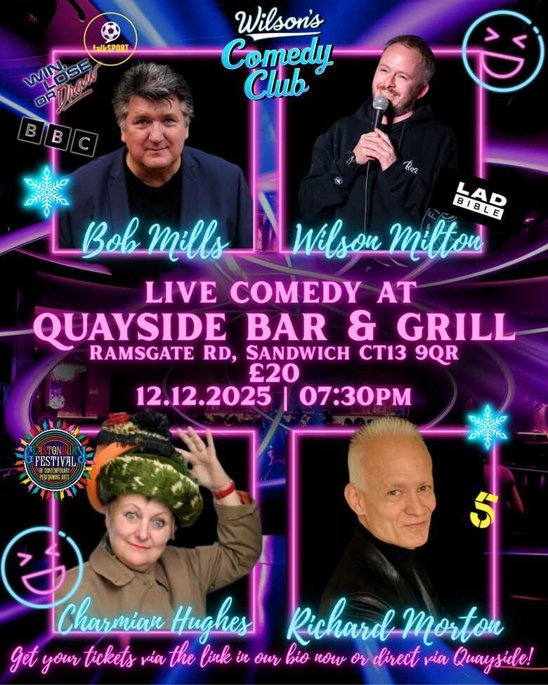 Wilson’s Comedy Club returns to Quayside Bar & Grill with a HUGE December show – and we’re bringing a British comedy legend to town!