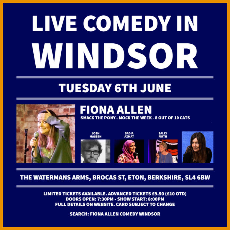 And let's not forget our fantastic location! Join us at the lively town of Eton, just a hop, skip, and a jump away from Windsor & Eton Riverside overground station. You'll find us nestled near The Watermans Arms, the perfect spot to grab a drink, sit back, and enjoy a hilarious evening with some of the finest comedy acts from the UK and beyond.