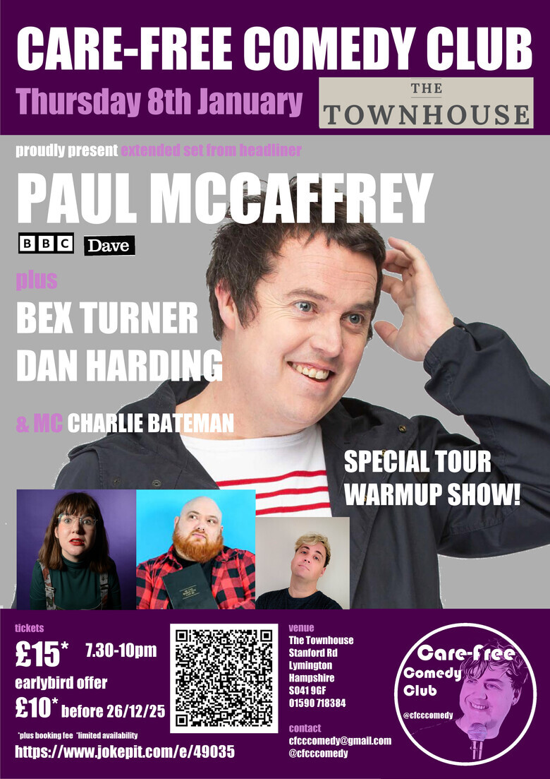 Great venue and friendly atmosphere. Brilliant comedians who I hadn't heard before with wonderful original material. I recommend you to go to any Care-Free Comedy event if you can.