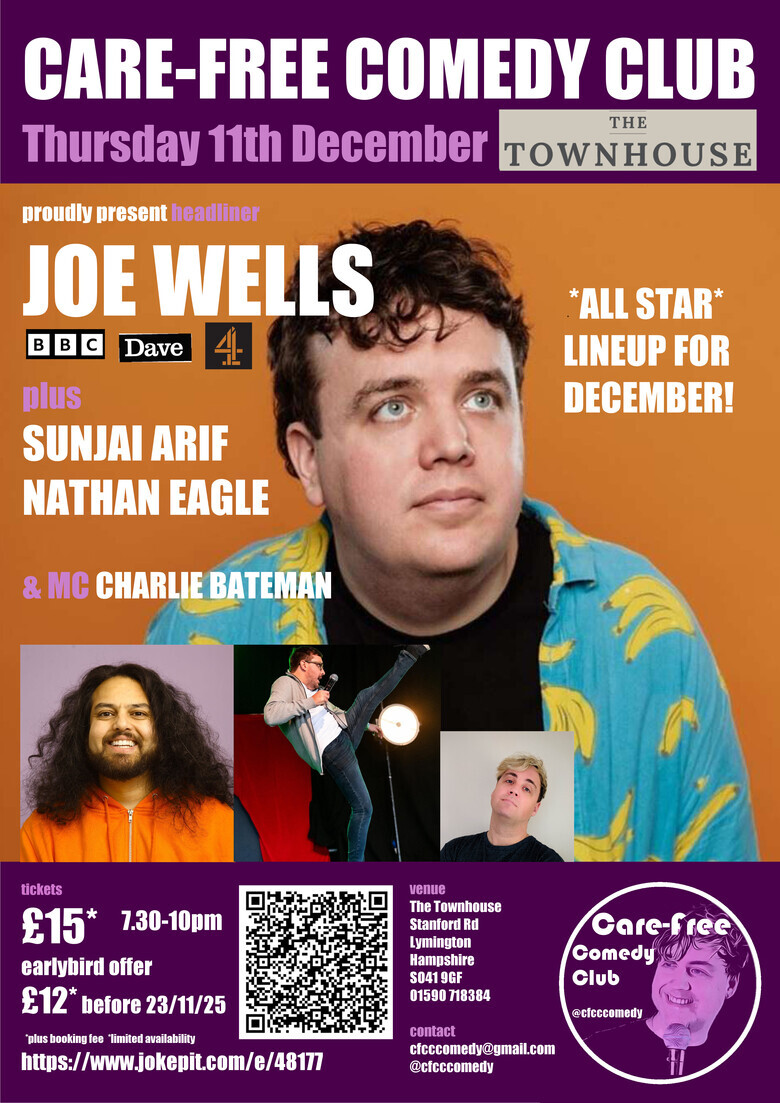 Featuring top headliner JOE WELLS https://www.joewells.org.uk