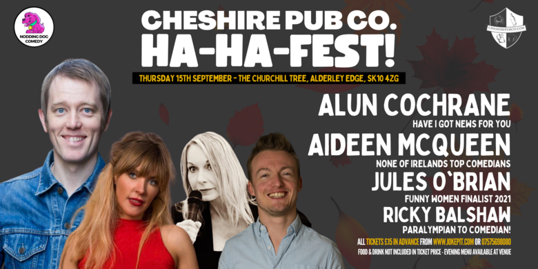 Live comedy returns to The Churchill Tree as Nodding Dog Comedy and Cheshire Pub Co. present HA-HA-FEST!
