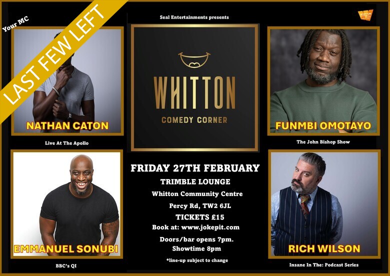 This will be a night full of laugh-out-loud moments as the UK's finest comedians take to the stage at Whitton Comedy Corner! Entertaining you will be stars of TV, radio and social media...